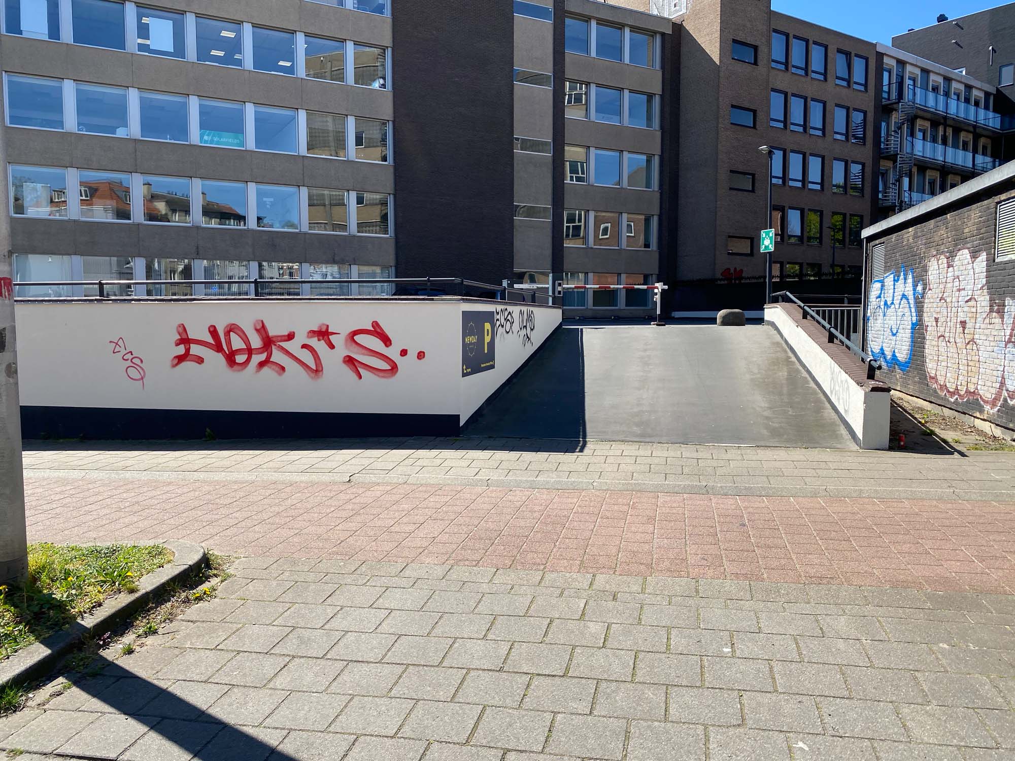 Spot vlakbij het centrum van Arnhem. Op het garagedak van een bedrijvenpand zit deze rail to bank. Vooral in het weekend te skaten als er geen auto’s geparkeerd staan.