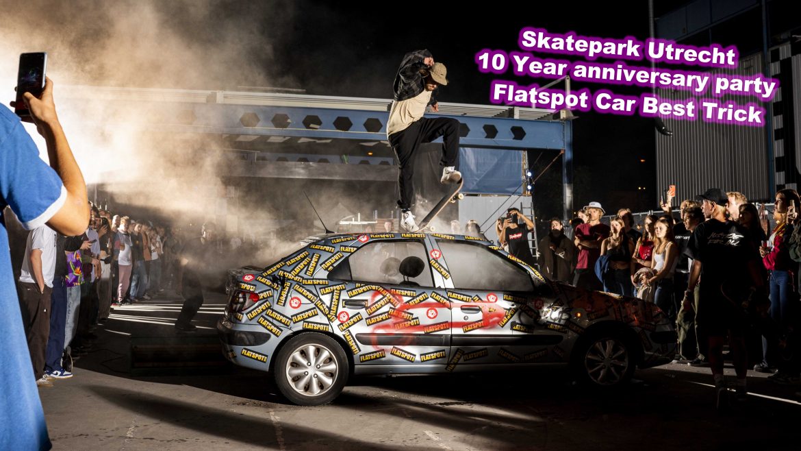 Dit jaar viert Skatepark Utrecht haar 10e verjaardag, en dat mag natuurlijk niet onopgemerkt voor gaan. SPU pakt dit jaar dan ook groot uit met een weekend lang verschillende events, waaronder de party op vrijdag avond. op het terrein naast het park. Live muziek, verschillende skateboard onderdelen en natuurlijk de Flatspot Best Trick op de auto waarbij er €500 cash te verdelen was onder de winnaars. Wat een avond…