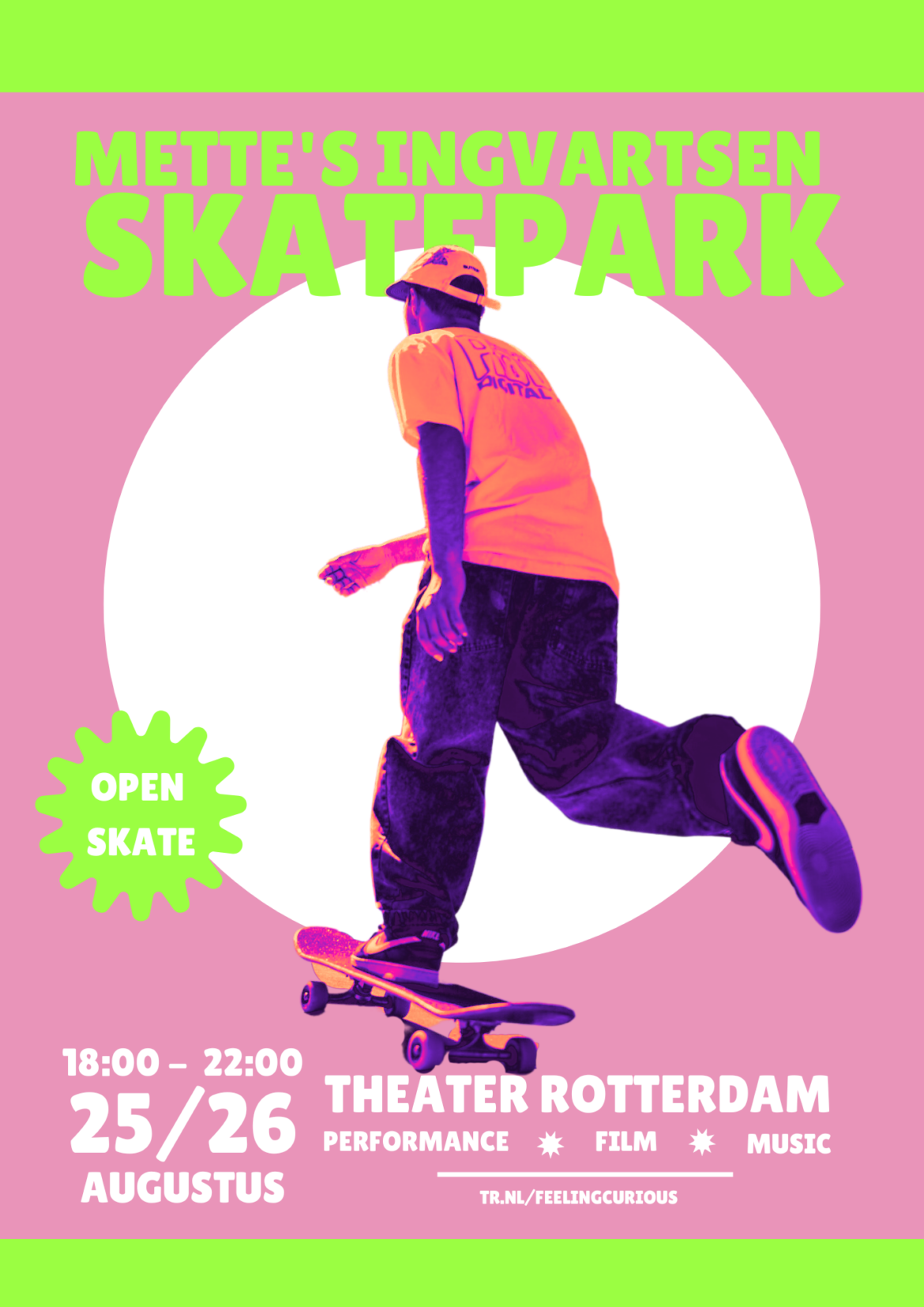 Theater Rotterdam presenteert Skatepark, een unieke voorstelling op 25 en 26 augustus, waarin het theater volledig wordt omgevormd tot een waar skatepark. Voor deze bijzondere gelegenheid zal de deur wagenwijd openstaan voor de lokale skate community. De hal wordt uitgerust met een skatepark , waardoor iedereen de kans krijgt om voor de voorstelling te skaten in het gebouw.