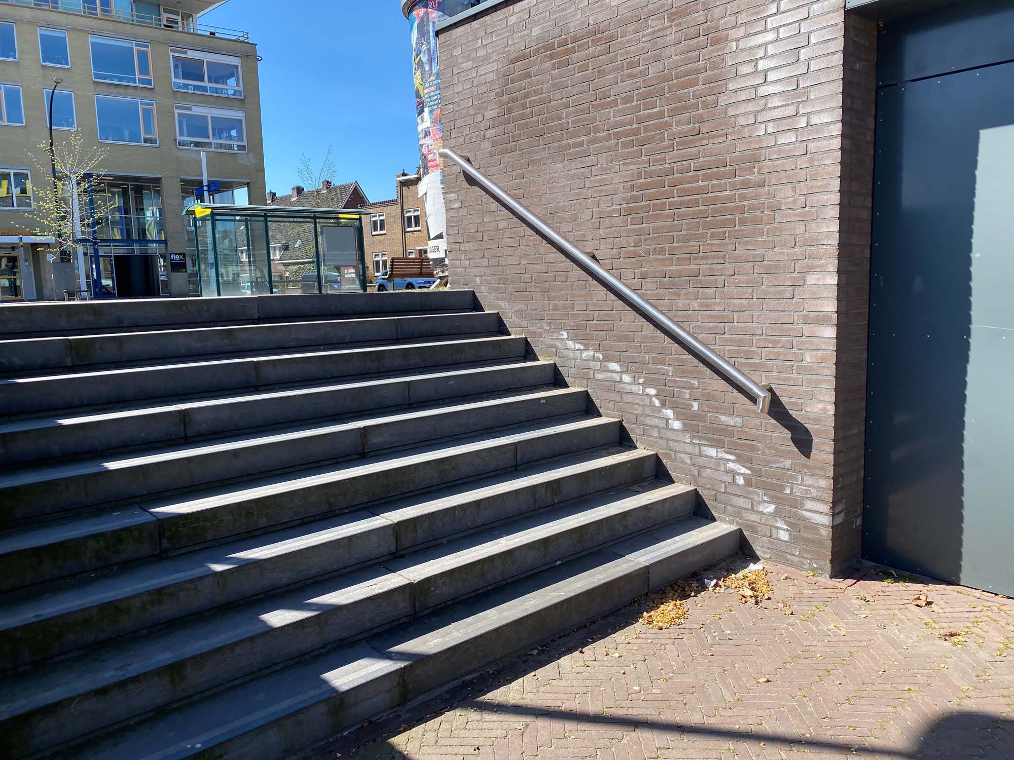 Bij het nieuwe gebouw van het Graafschap College vind je deze vrij hoge handrail met stair.